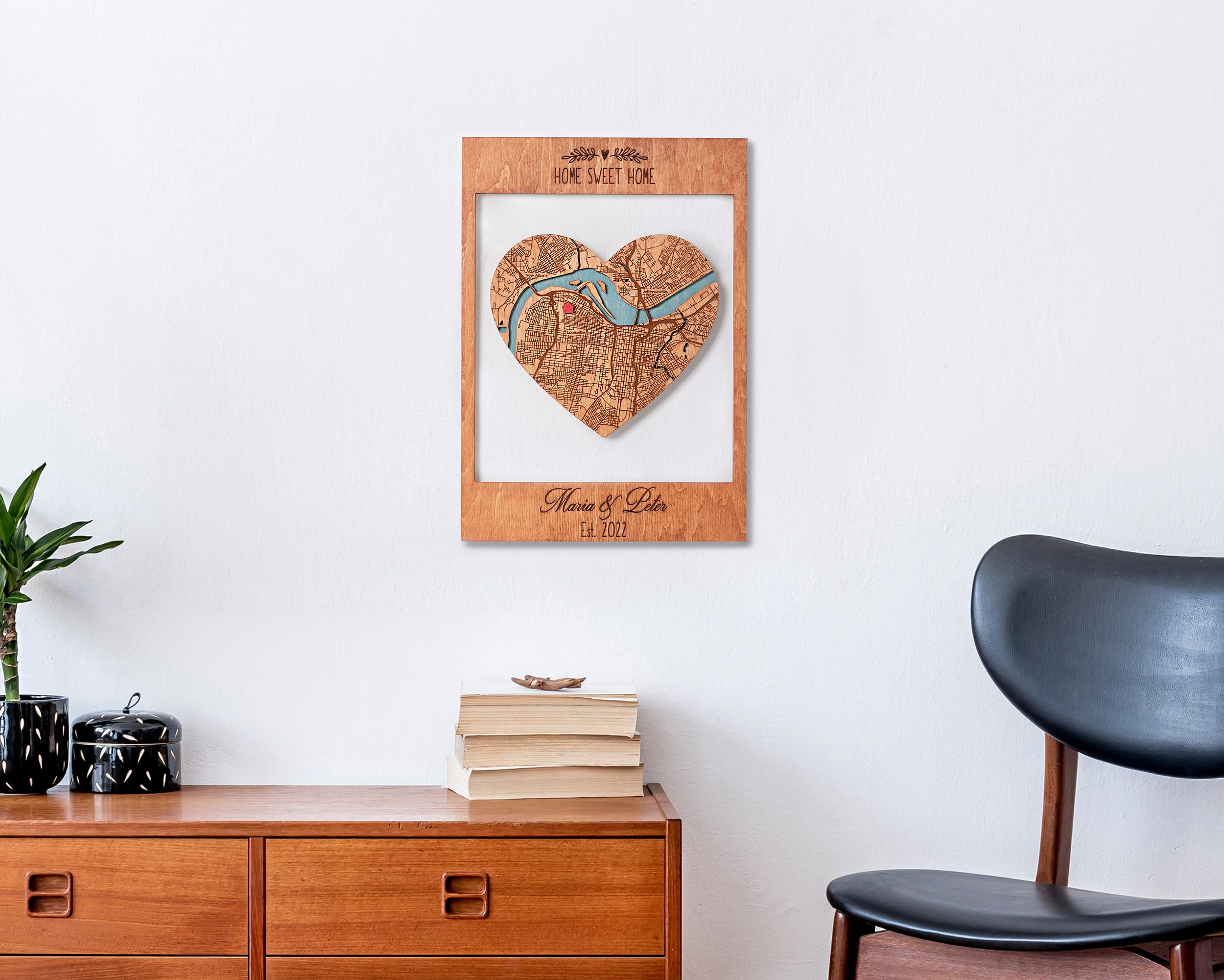 If you're looking for a distinctive and meaningful gift to celebrate a housewarming, consider giving them custom wood map wall art.